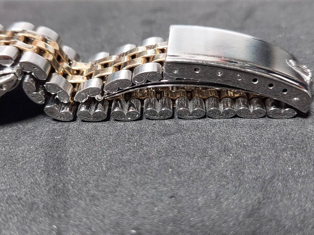 [Size] Case (excluding crown): Diameter 3.6 cm; Wrist circumference: 19 cm - 22 cm (23 links); Wind-up bracelet. This is a gold and stainless steel combination model, but the previous owner repaired the gold parts with hard 9 or 10 karat gold to repair any stretching.